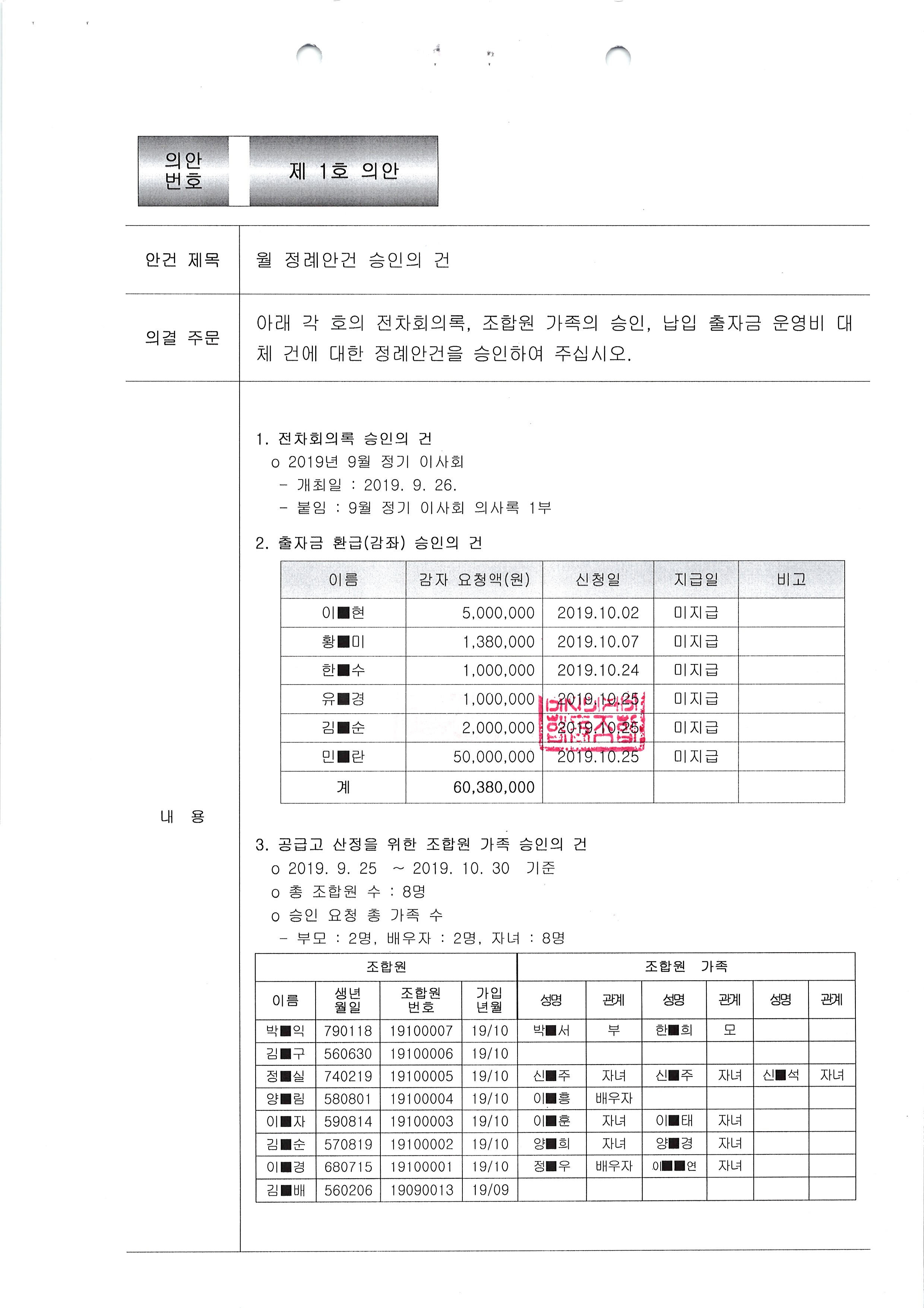 [2019-11] 임시이사회 결과보고
