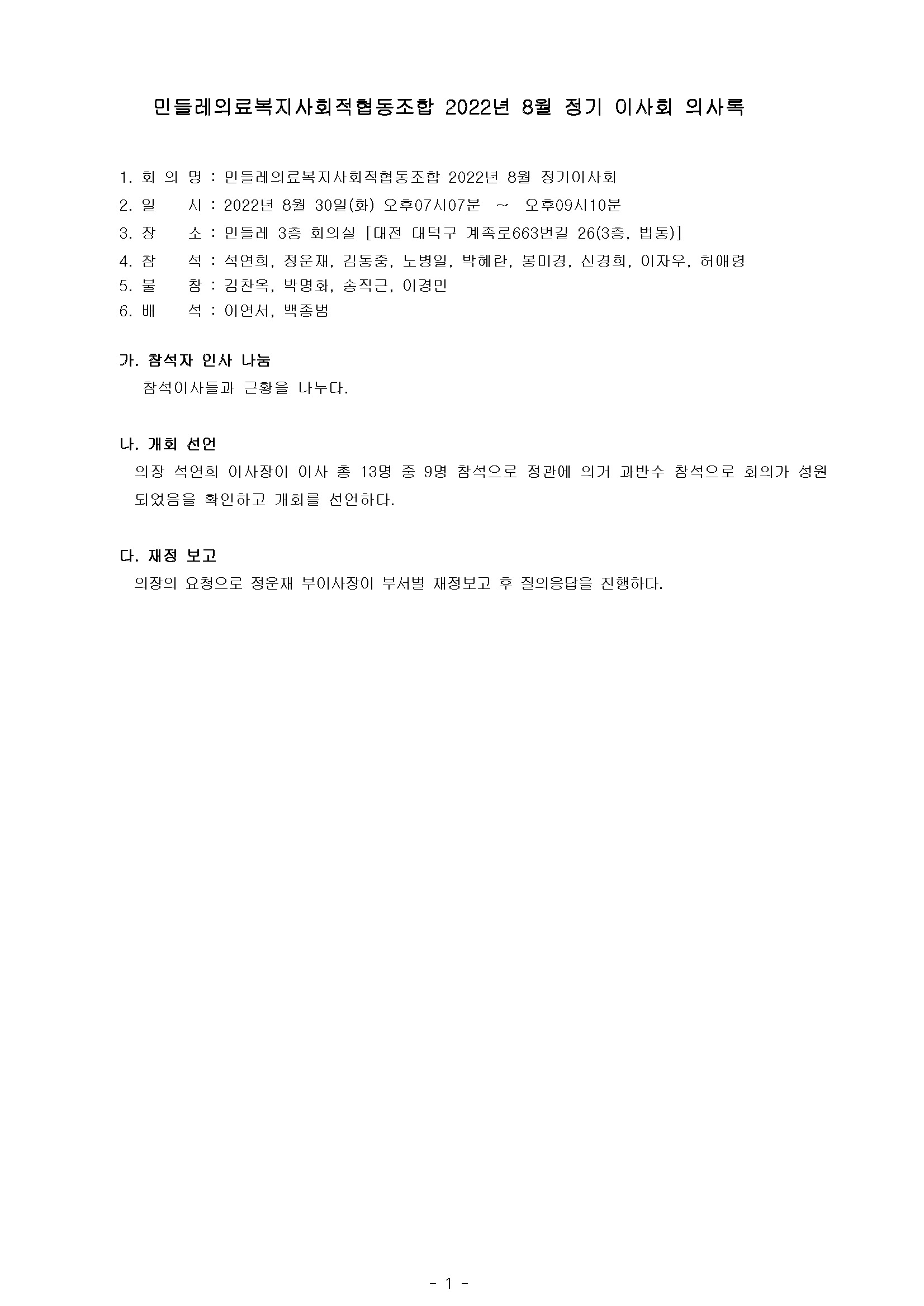 [2022-08] 정기이사회 결과보고