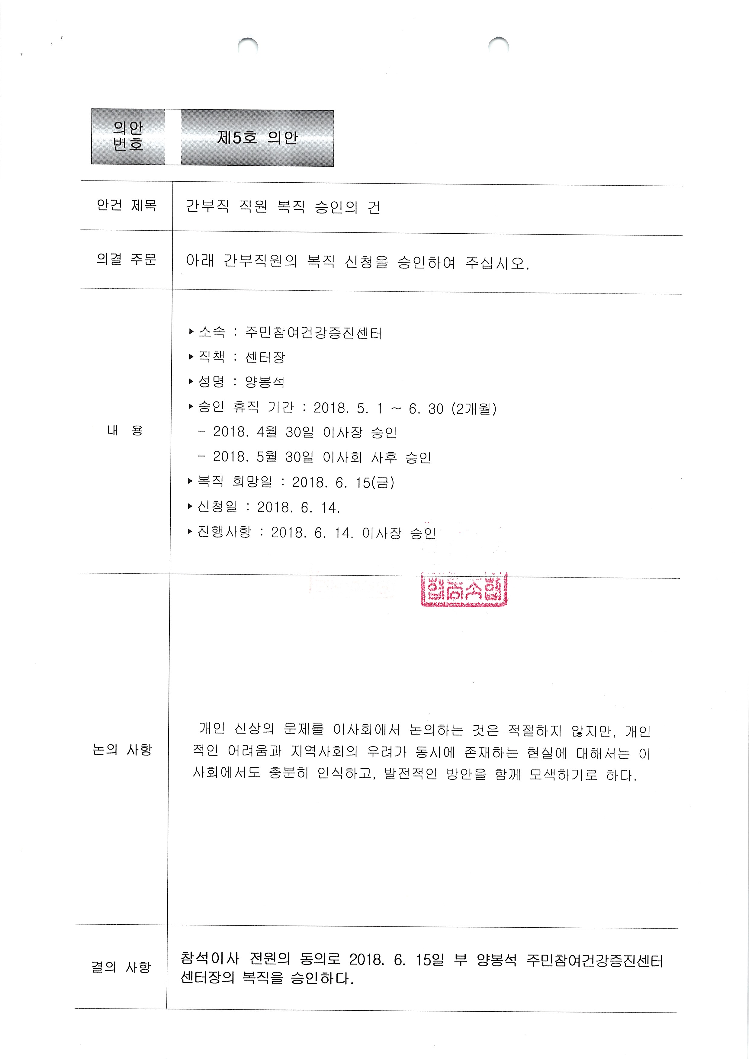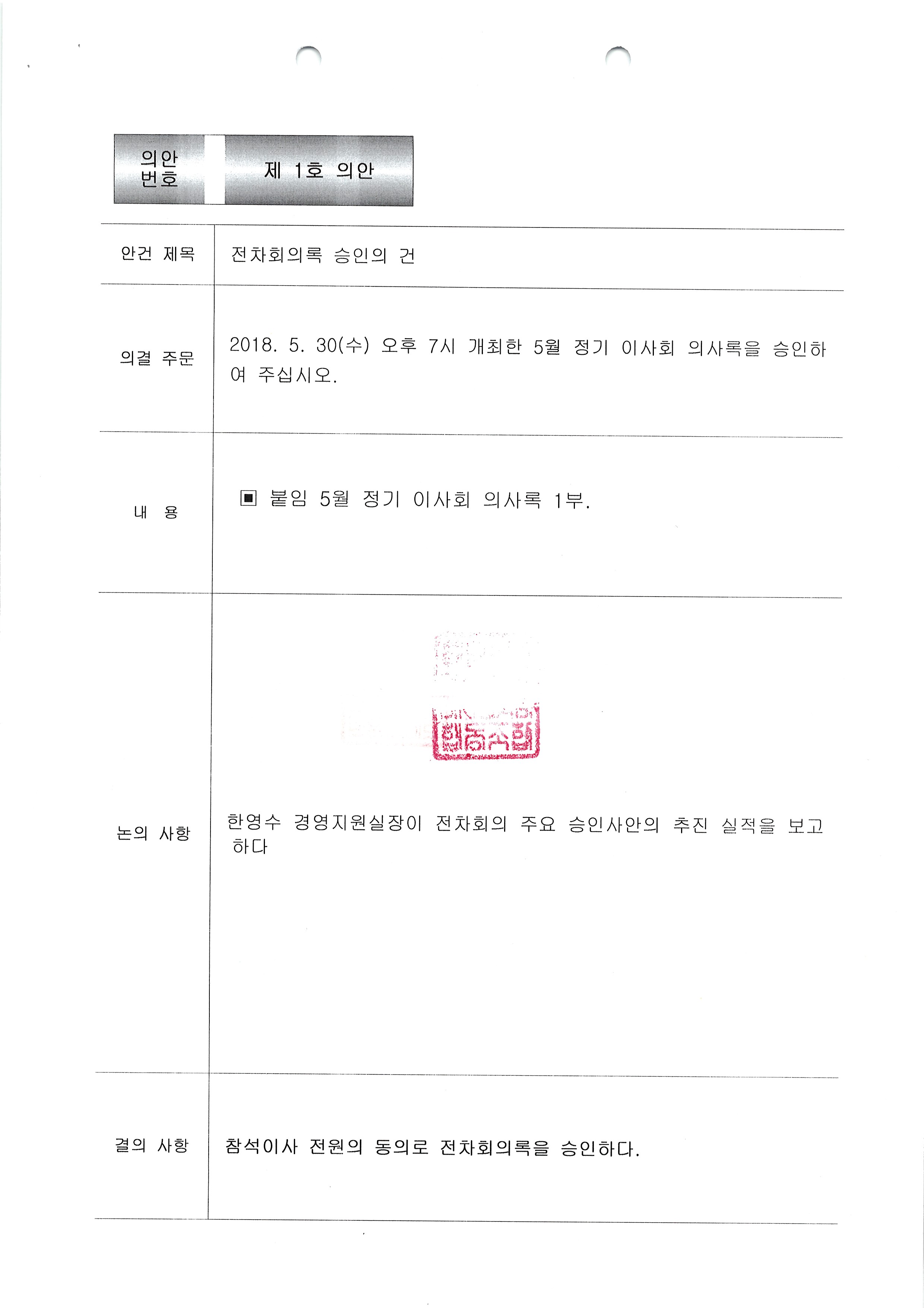 [2018-05] 정기이사회 결과보고