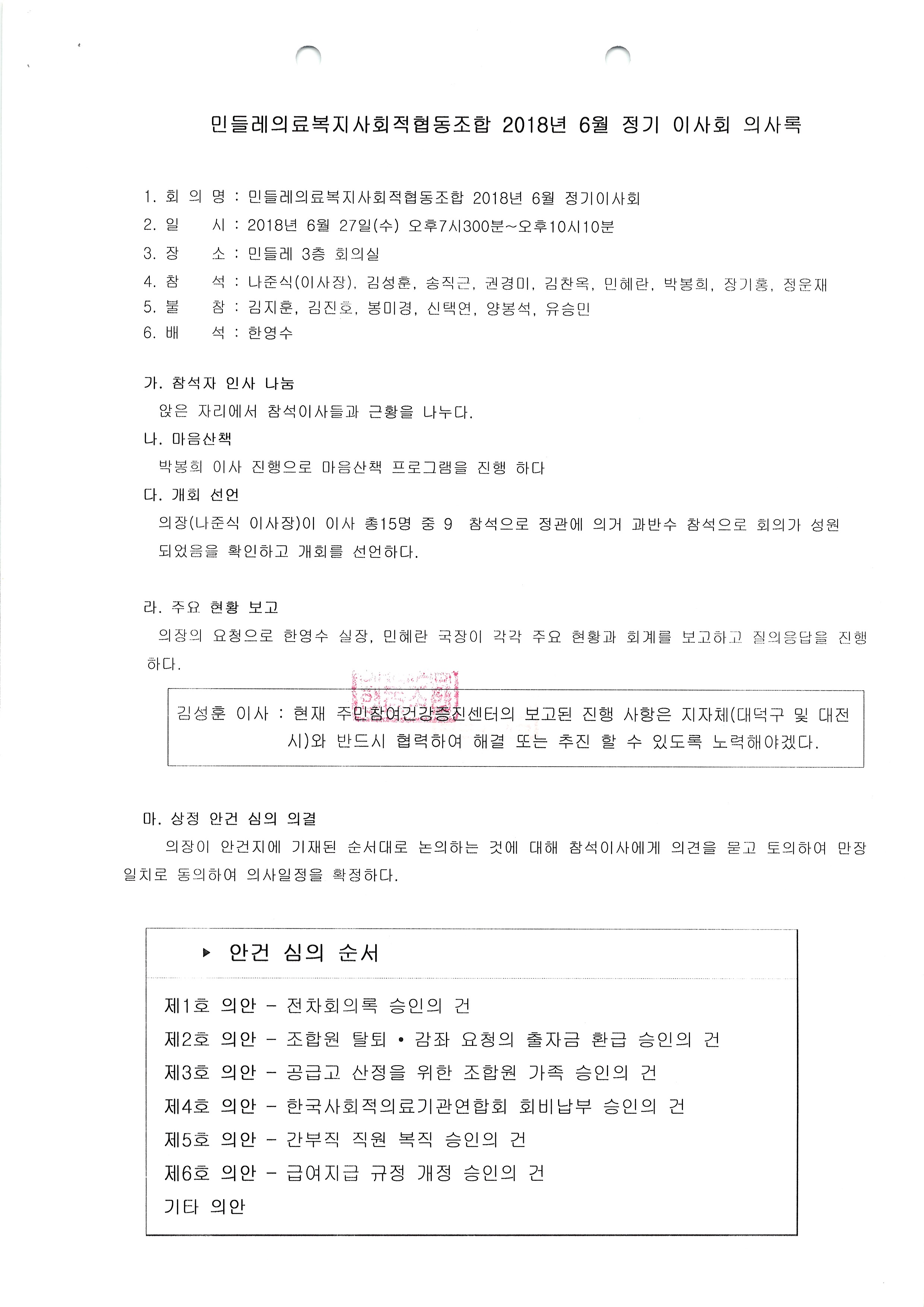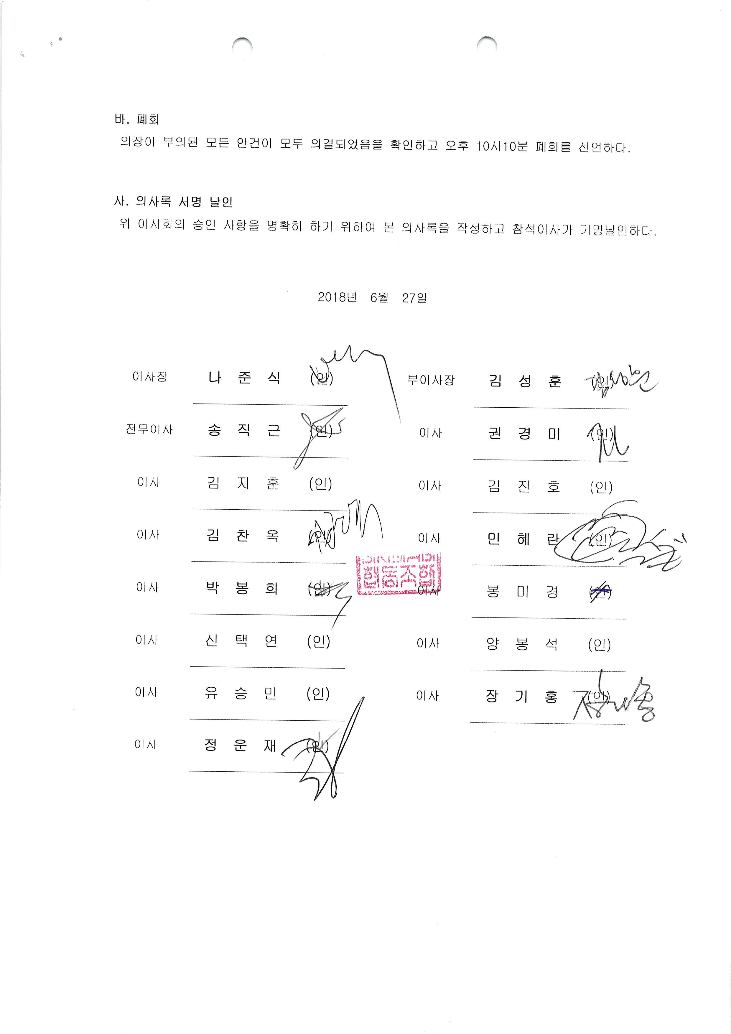 [2018-06] 정기이사회 결과보고