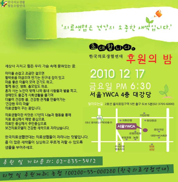 | 제목 | 한국의료생협연대 후원의 밤에 함께해요:) |