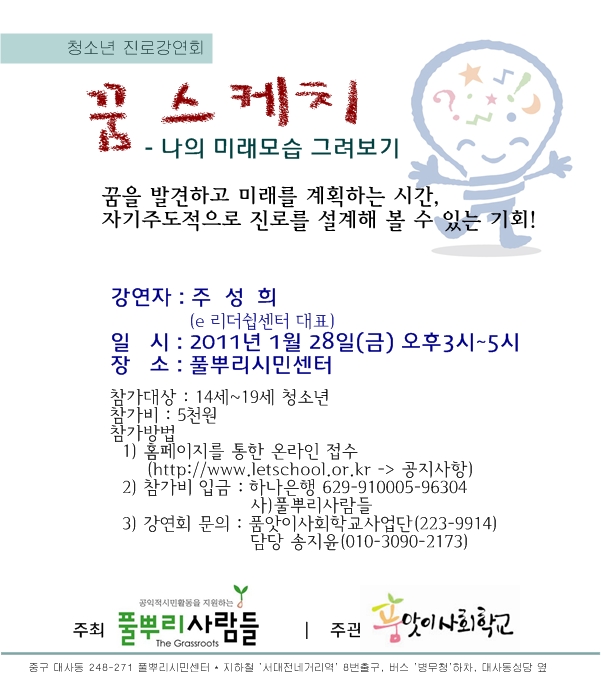 | 제목 | [품앗이사회학교] 청소년을 위한 진로강연회 '꿈 스케치'교 |