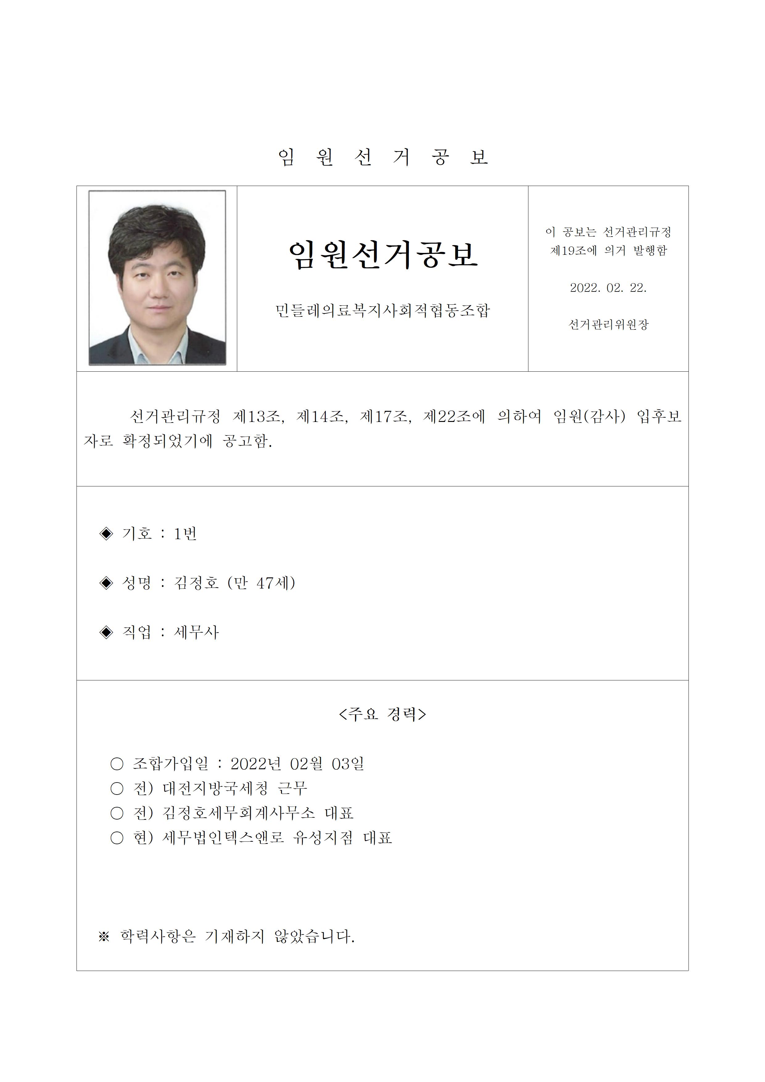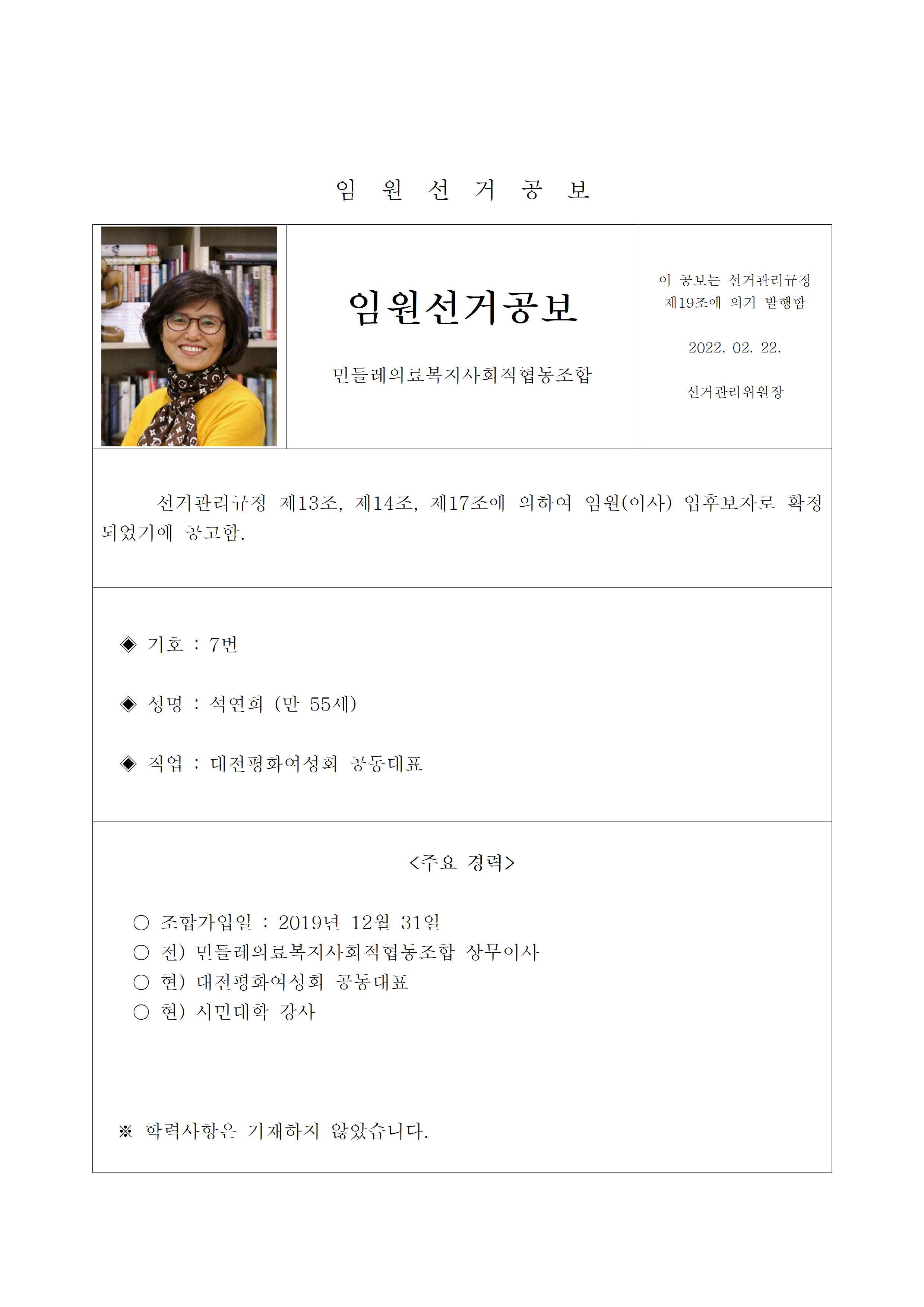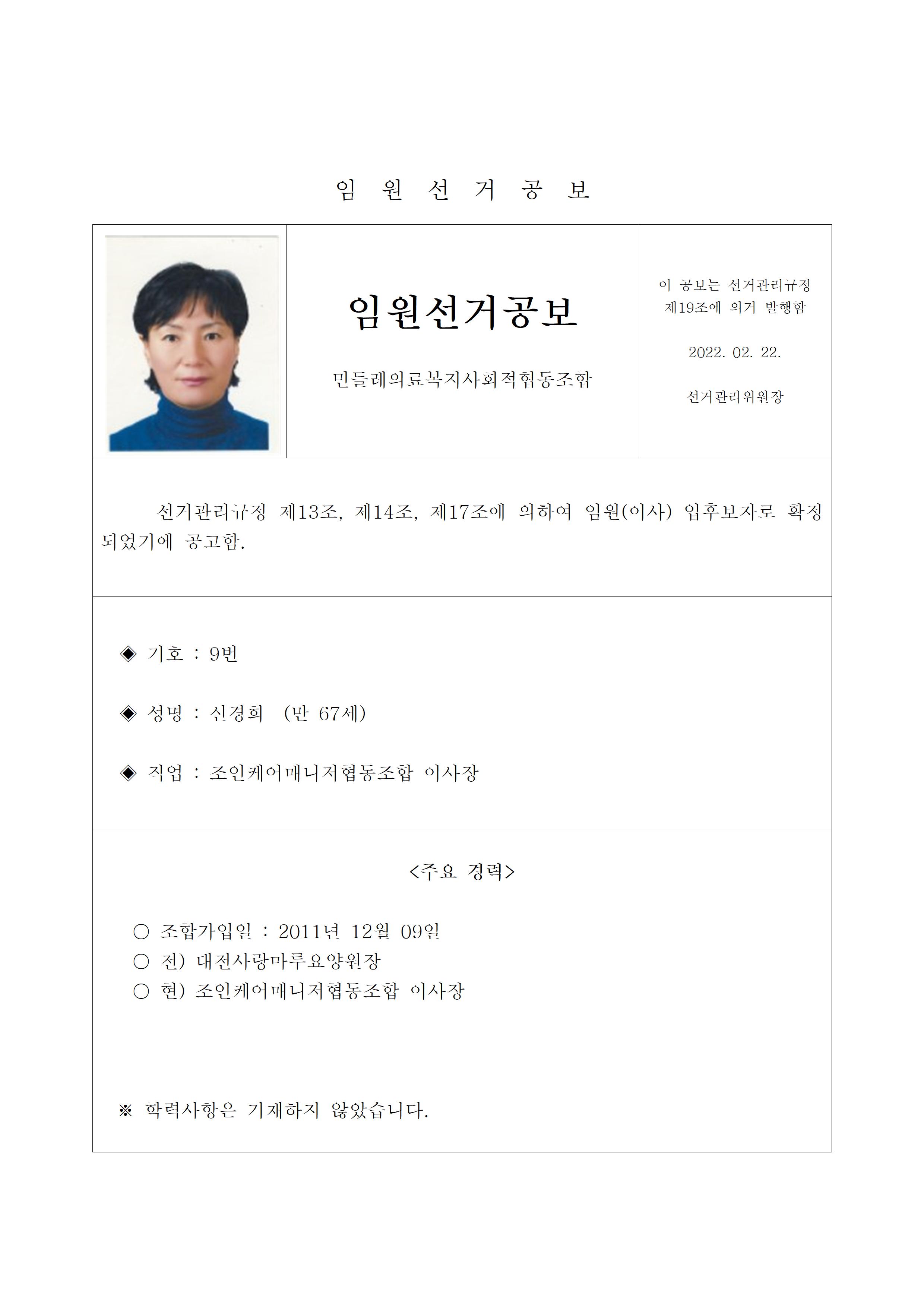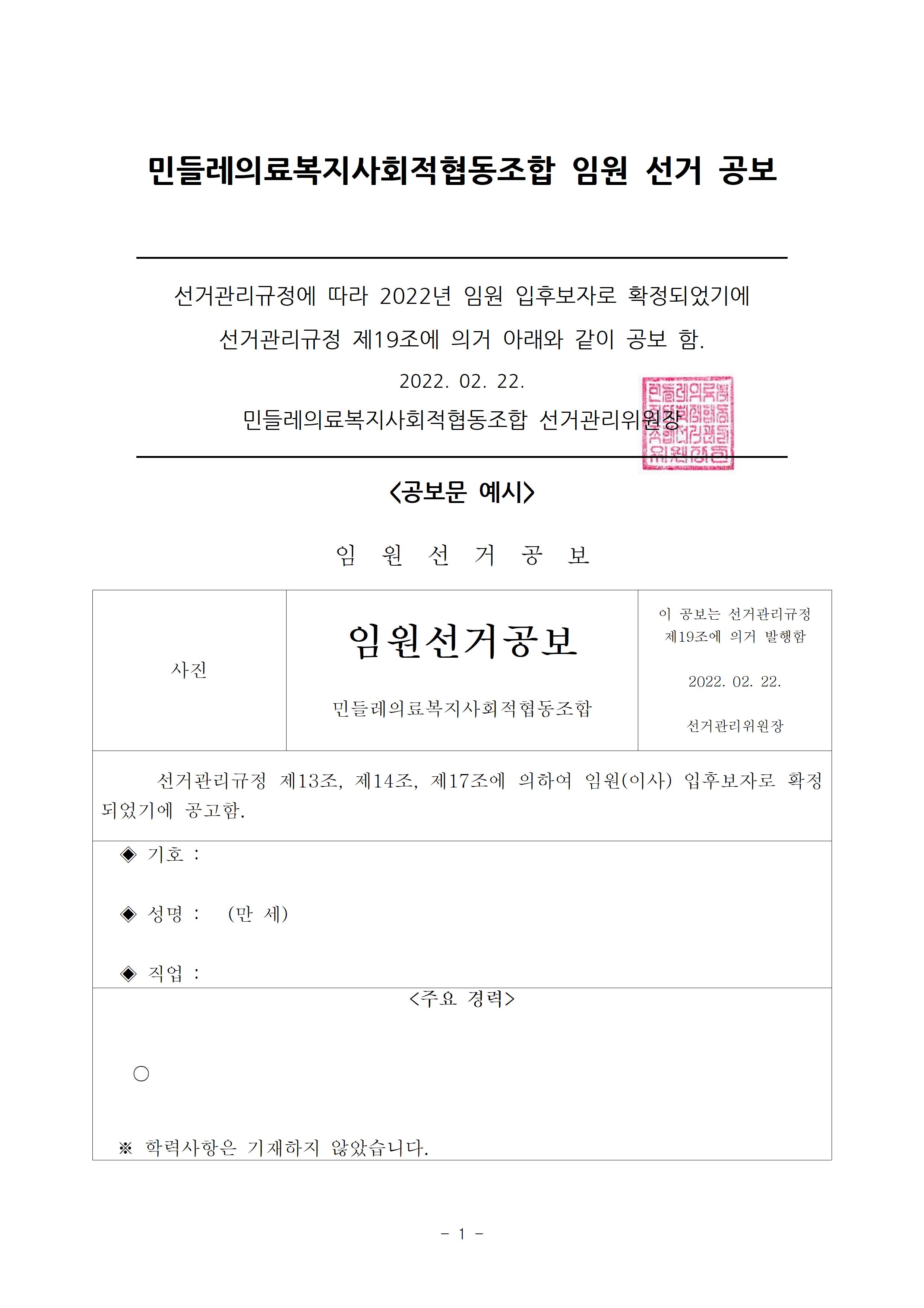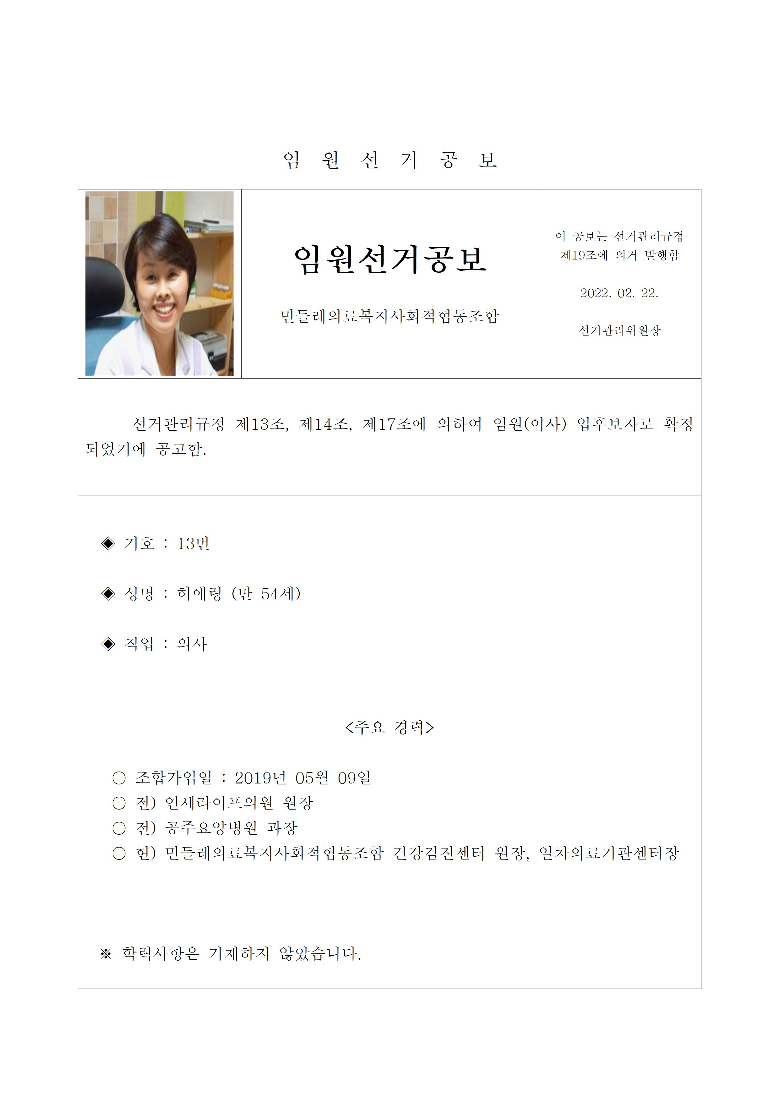 2022년 민들레의료사협 임원(이사, 감사)선거 공보 상세내용