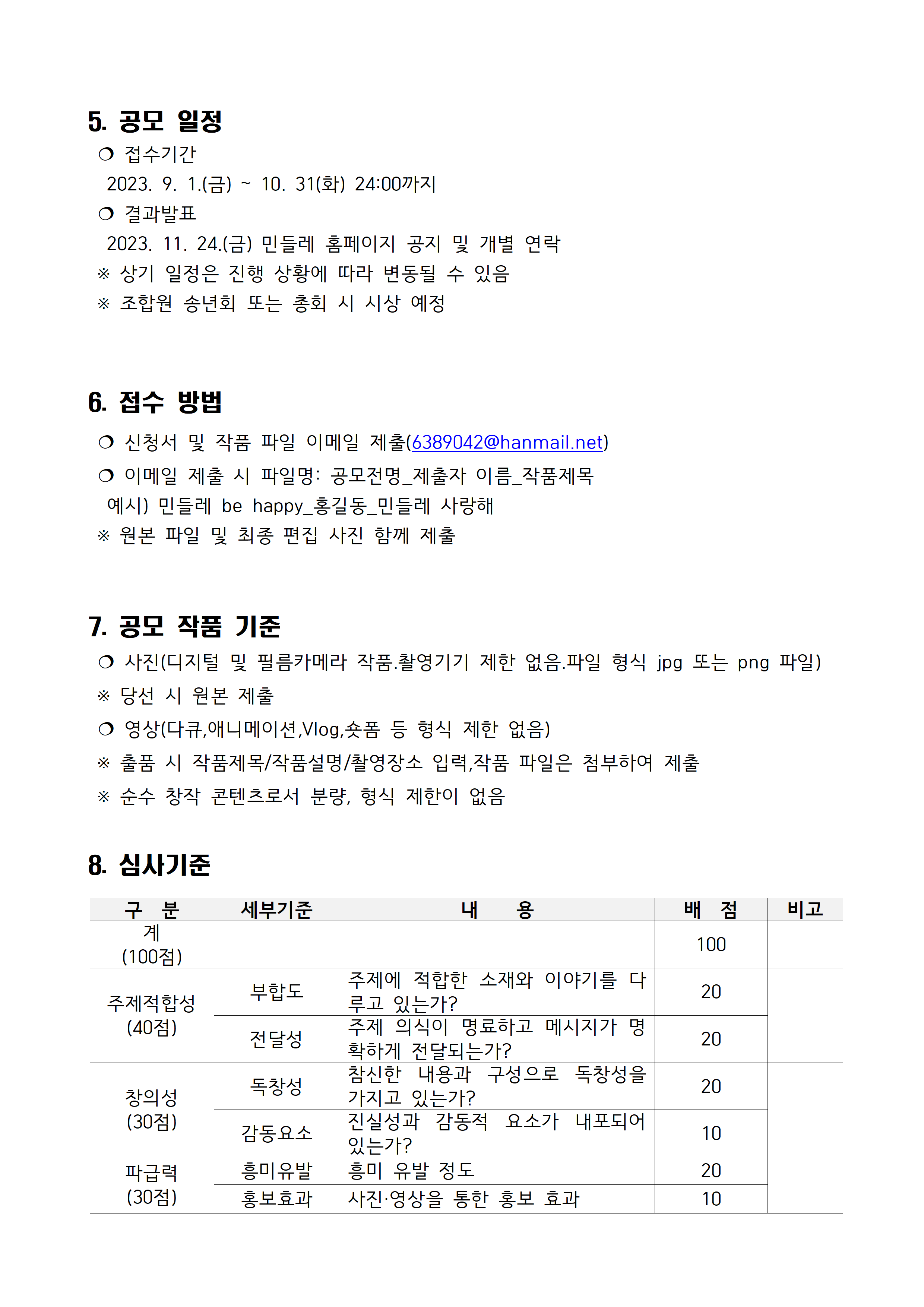 공모기간 : 2023년 9월 1일(금) ~ 10월 31일(화)