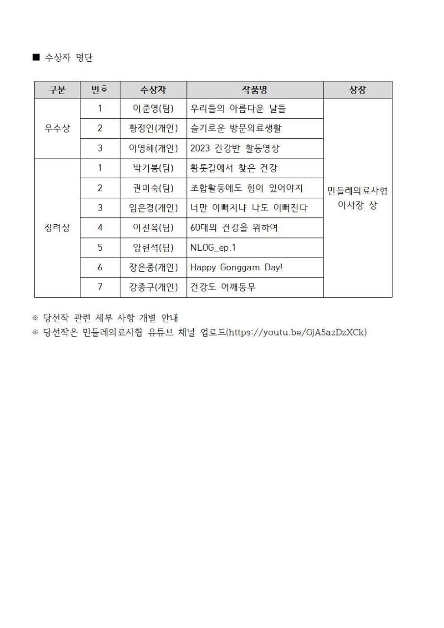 [민들레 be happy] 조합원 사진/영상 공모전 수상자 발표 상세내용