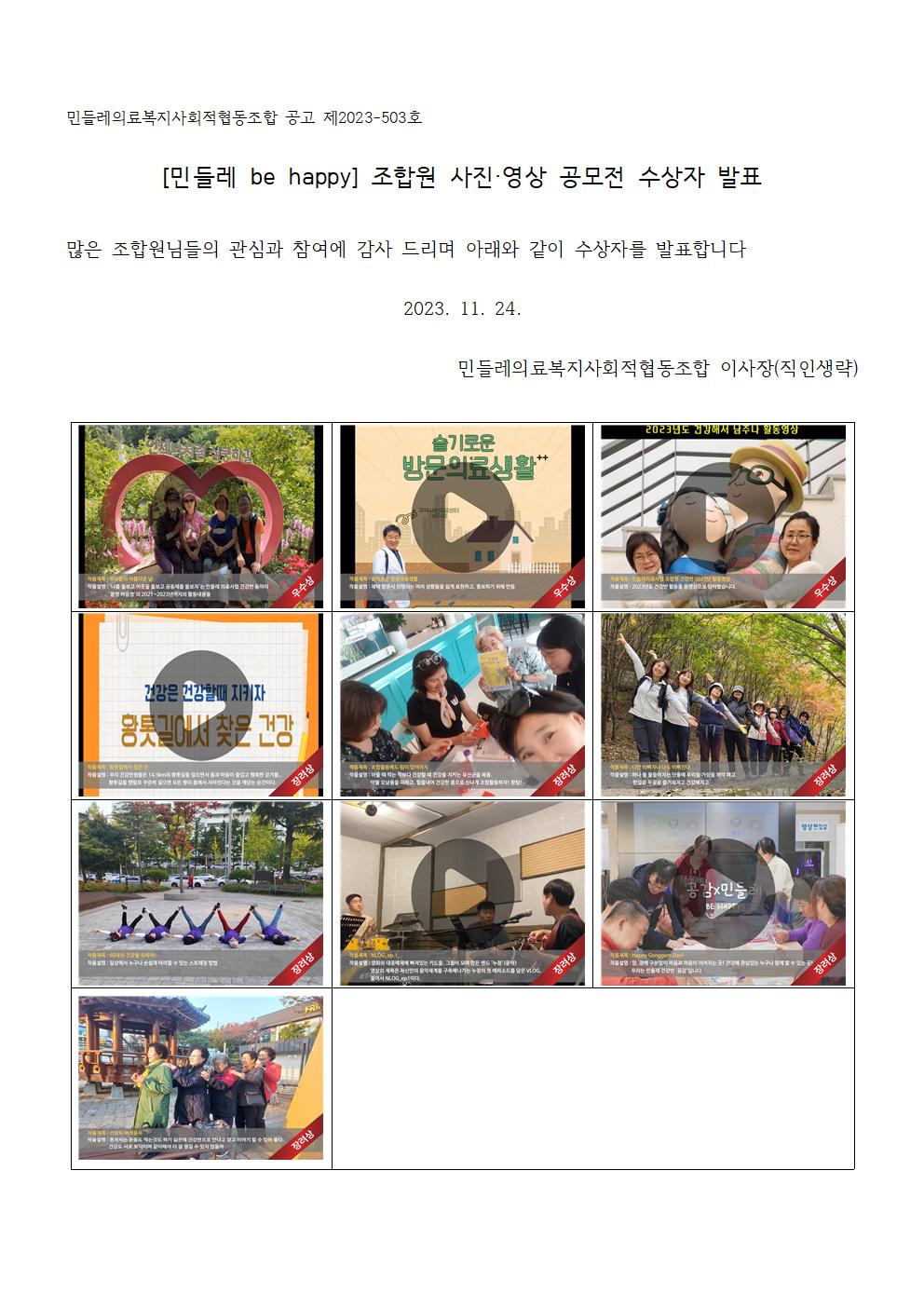 제목 [민들레 be happy] 조합원 사진/영상 공모전 수상자 발표