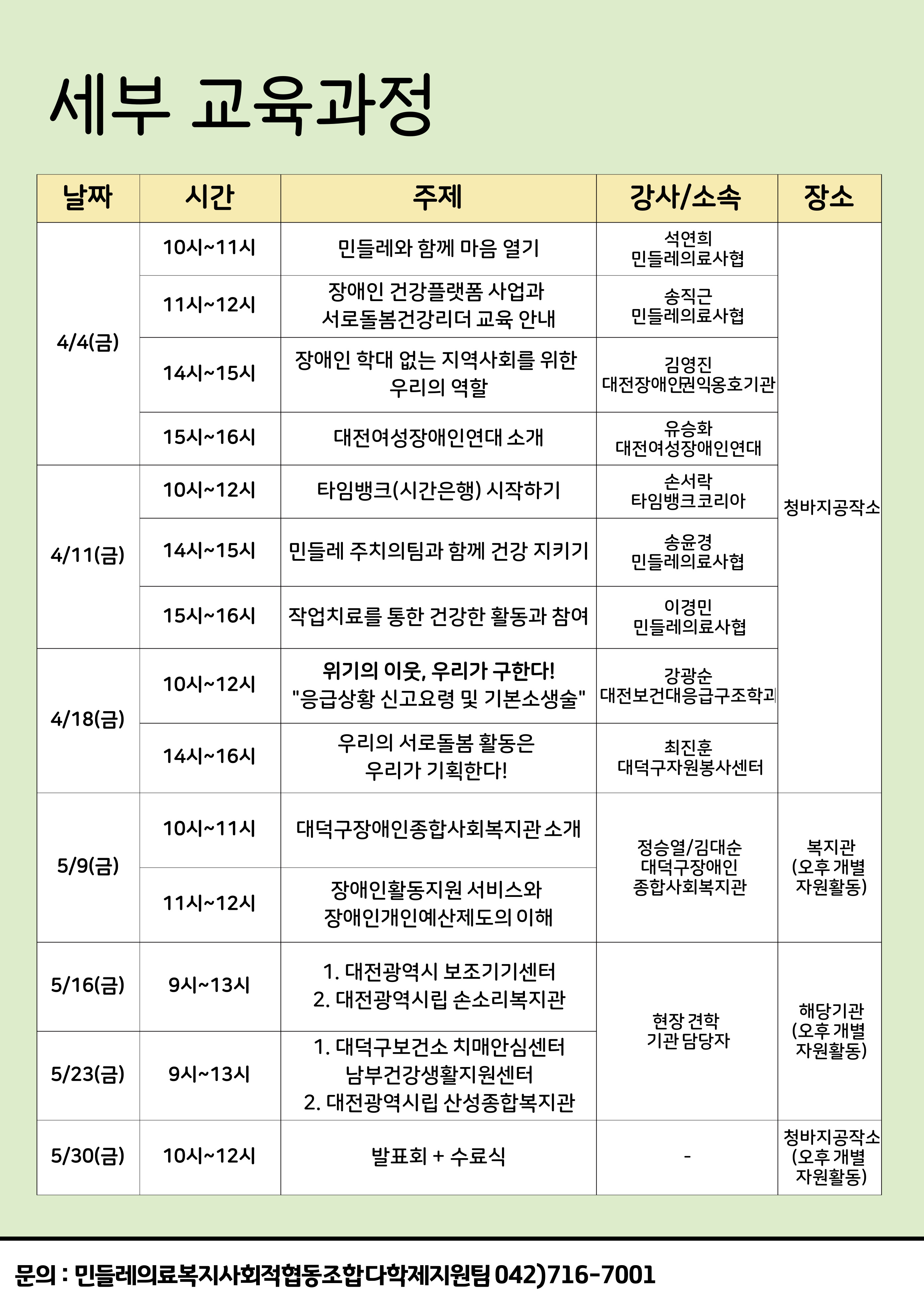 2025 서로돌봄 건강리더 교육과정 상세내용