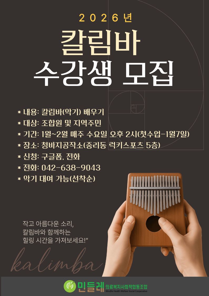 | 제목 | 2026년 칼림바 수강생 모집 |