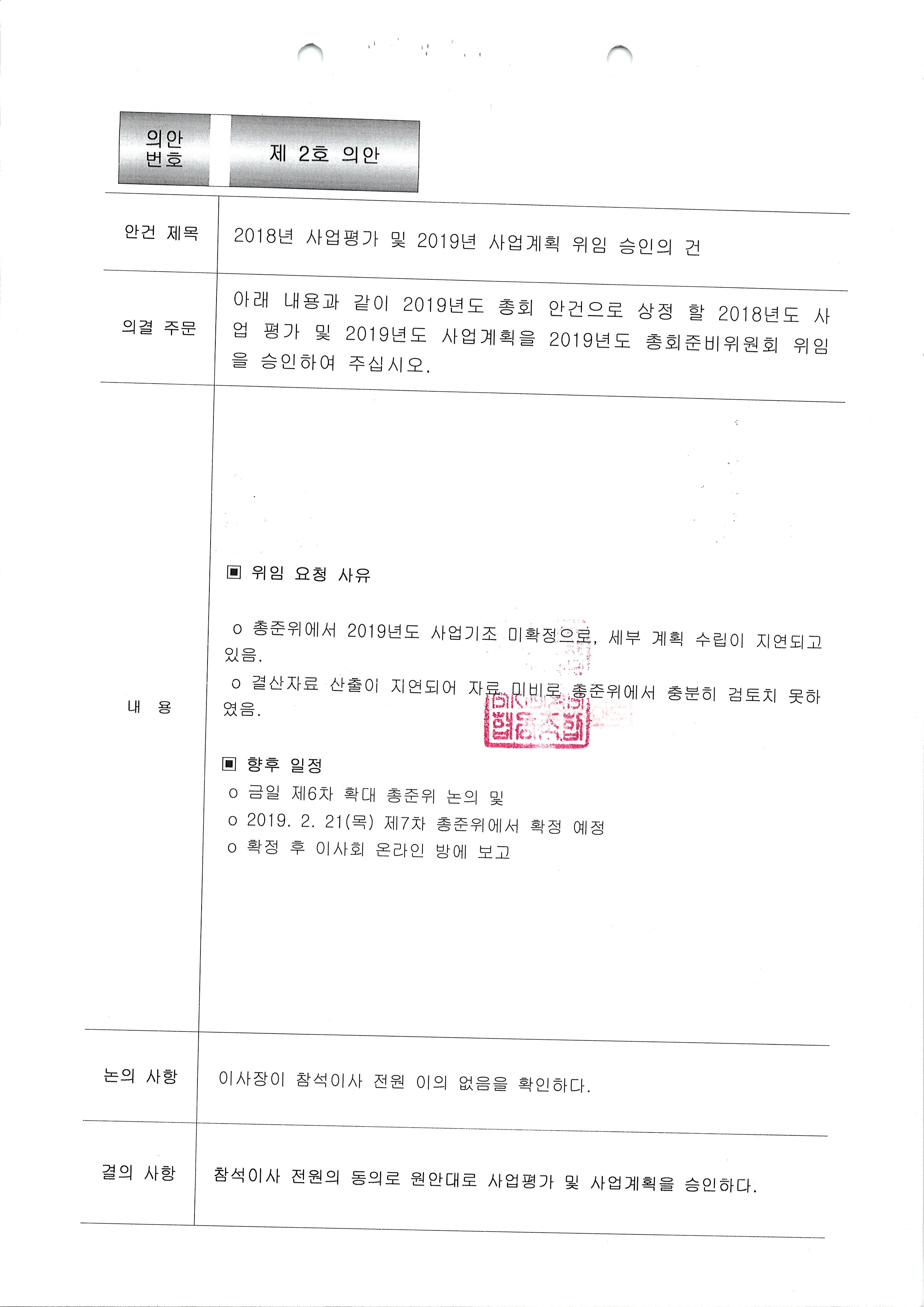 [2019-02] 임시이사회 결과보고