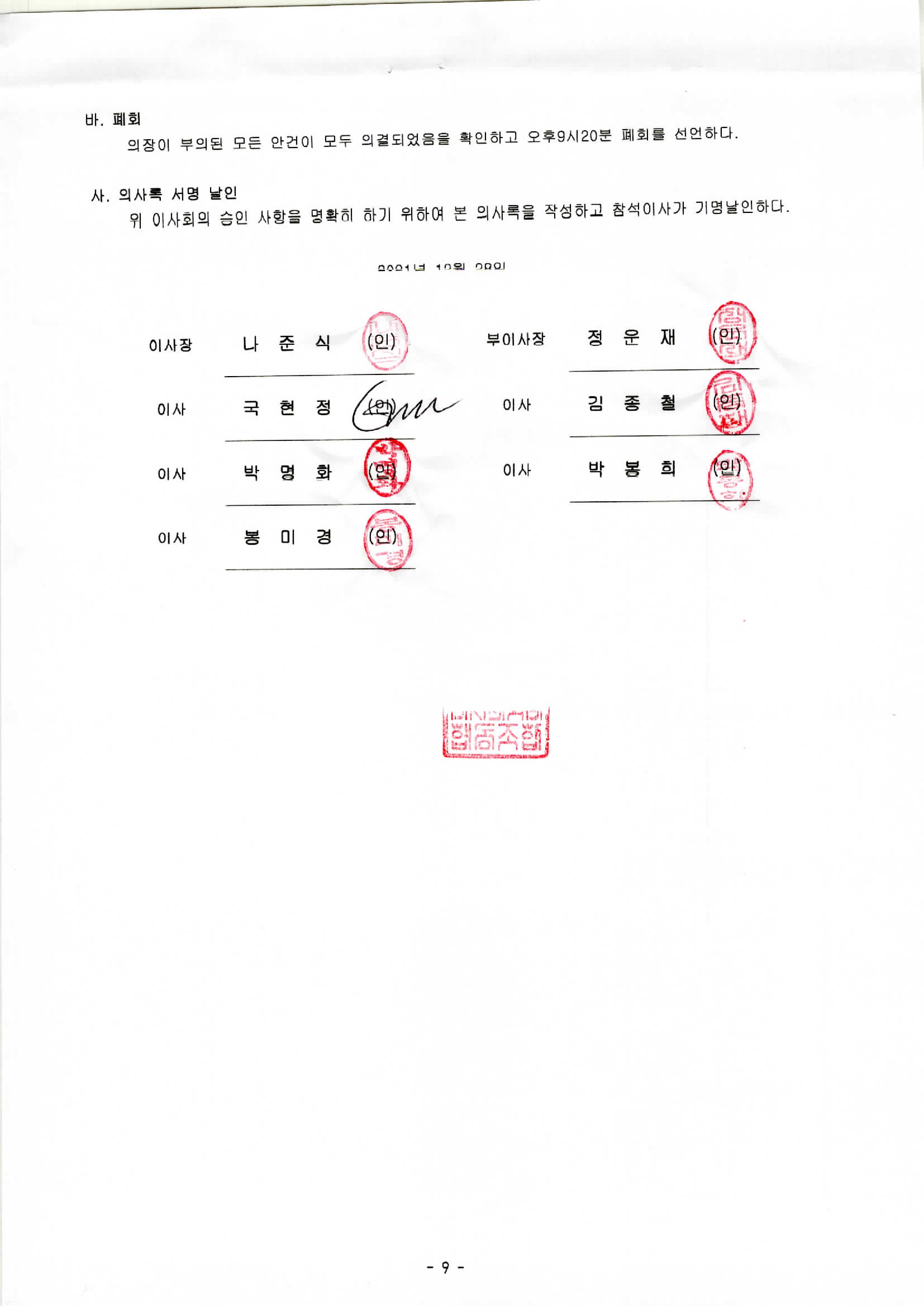 이사회회의록